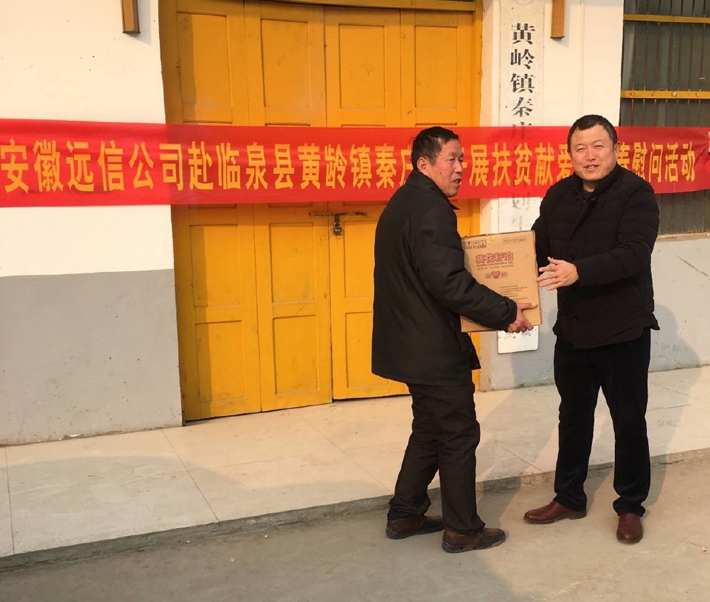 2017年1月17日,新春的腳步漸漸近了。踏著春的步伐,尋著年味,公司董事長余松林帶著慰問品,專程到臨泉縣黃齡鎮秦莊村,送去新年的問候和祝福。